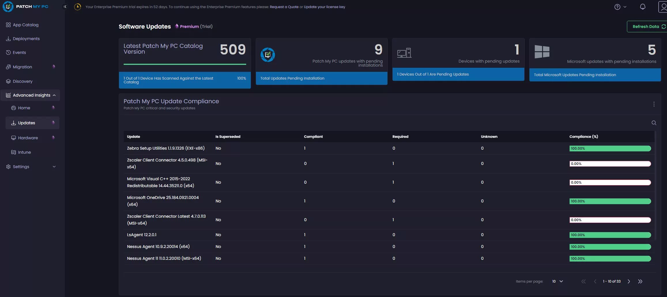 - By default, only the Intune subsection will populate. All others require the PatchMyPC client to be deployed.