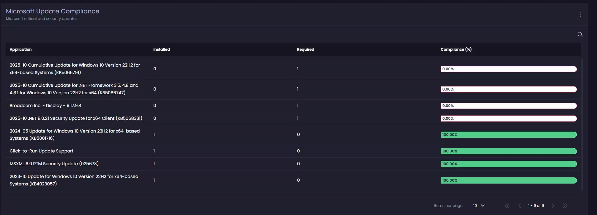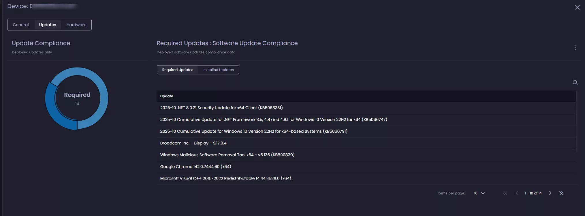 - Each device provides detailed and grouped information about REquired and installed update status for Apps and Windows