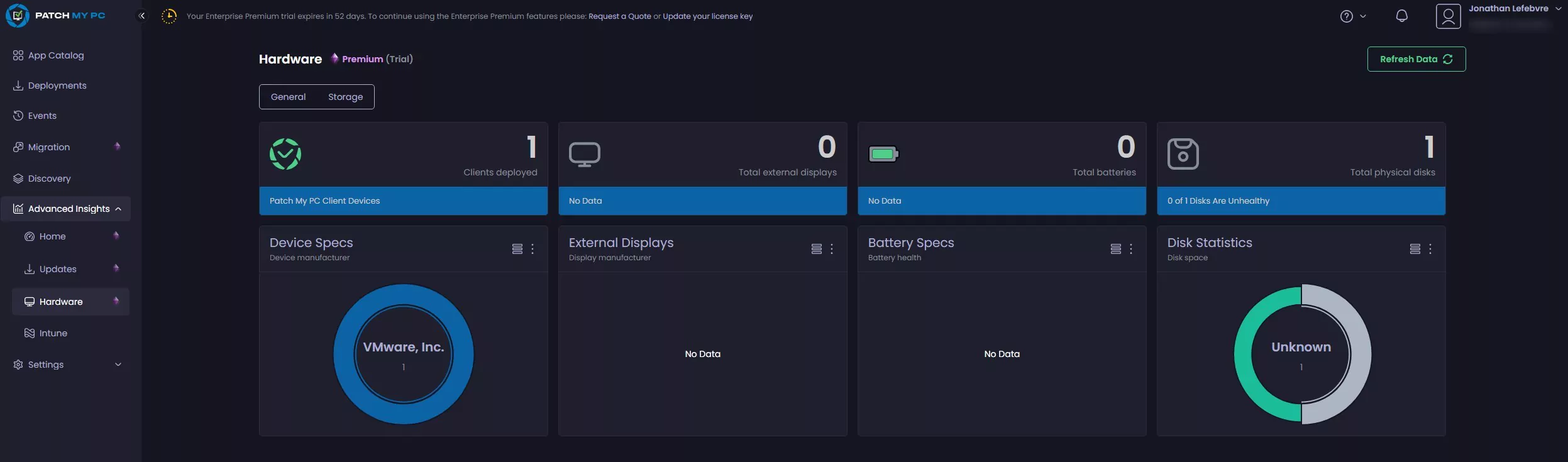 To get the Home/Update/hardware sections to populate, the PatchMyPC Agent must be deployed.
