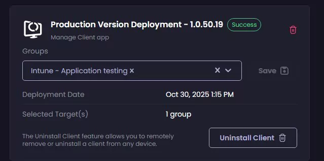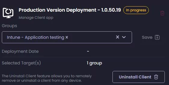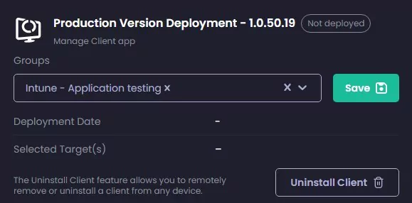 - Under Production Version Deployment, select an Entra ID Group and click Save