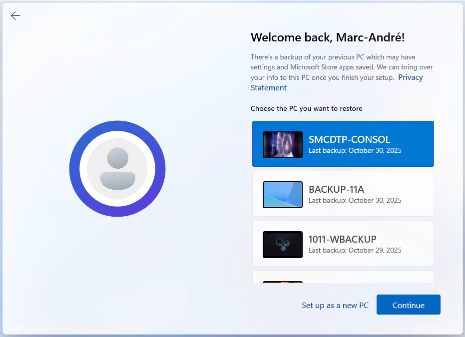 - Their configurations will have been restored from the backup (desktop background, explorer settings, Windows Store apps, etc…), personal files will be restored from OneDrive, and required apps that were not set as blocking in the ESP will gradually come down to the device.