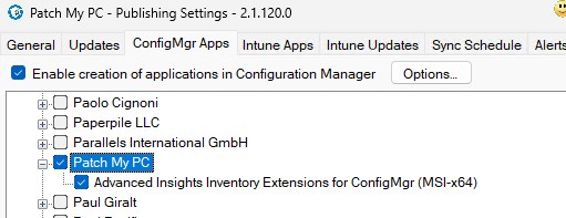 Publish Patch My PC Advanced Insights Inventory Extension